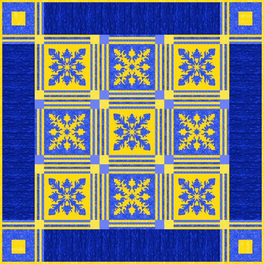 | Design Source - Description | Designed to showcase the blue and yellow colorways from my Software fabric line printed by Windham Fabrics. (I'm textile designer Yolanda Fundora.) |