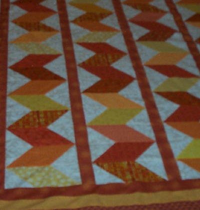 | Design Source - Description | Vibrant oranges, rusts, and yellows in a zig-zag block design. |