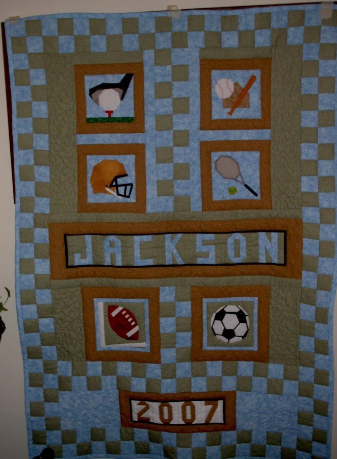 osagebluffquilter Jackson's Baby quilt - Little Jackson has a sports theme room.