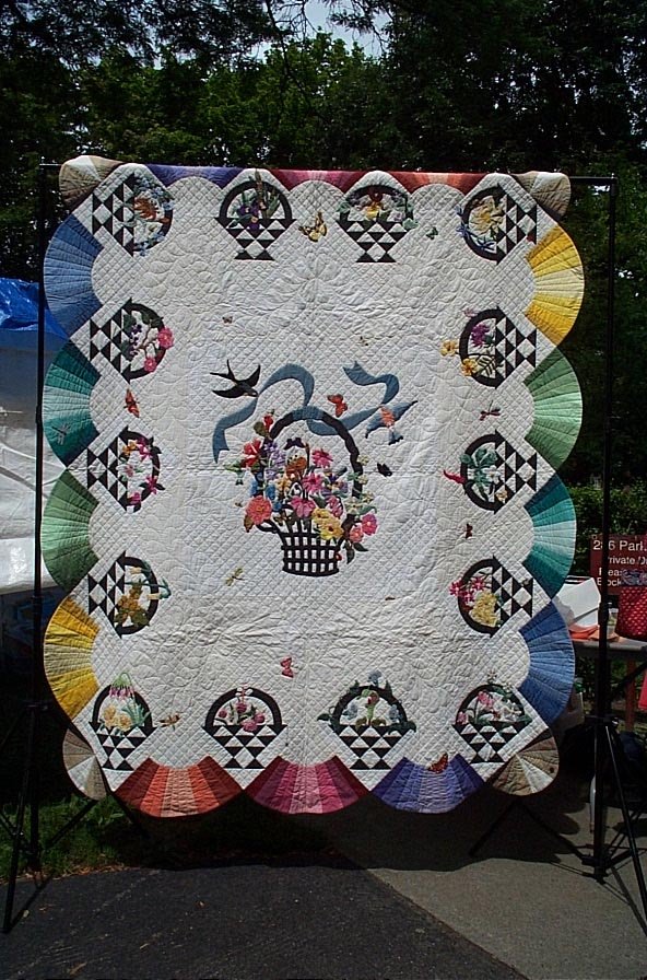 Feather Fans and Flower Baskets - An original design by Michele Harer and made by members of Genesee Valley Quilt Club, the oldest, continuously-running quilt club in the US. Every two years, the members make an opportunity quilt for charity. Accepted into AQS in 2004. Pattern is available.