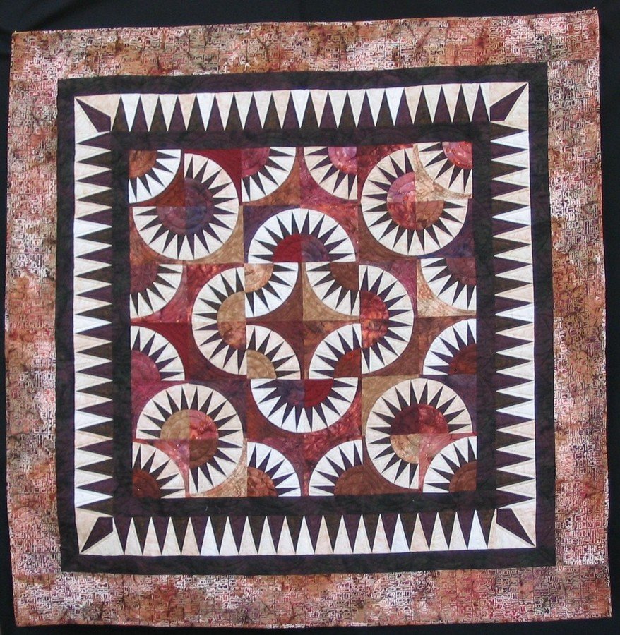 | Design Source - Description | This is a class I teach, using strips to fill the paper pieced areas, and invisible appique for the curved edges rather than curved piecing. I think the color selection was just right. |