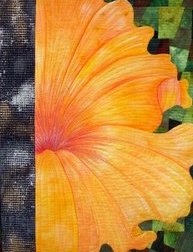Art-quilt-works Orange bloom - Based on my hand drawn images of petunia blooms and used for class sample.