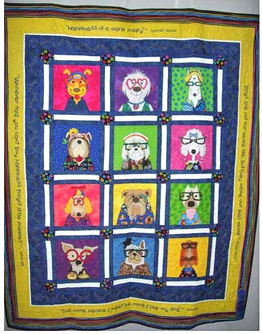 | Design Source - Description | 12 blocks of fused and machine appliqued animated dogs. |