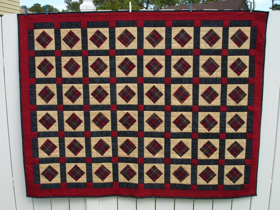 Georgene Terry Dean's Quilt - The wool plaid squares are appliqued onto the square blocks so that I could get the plaid on point.