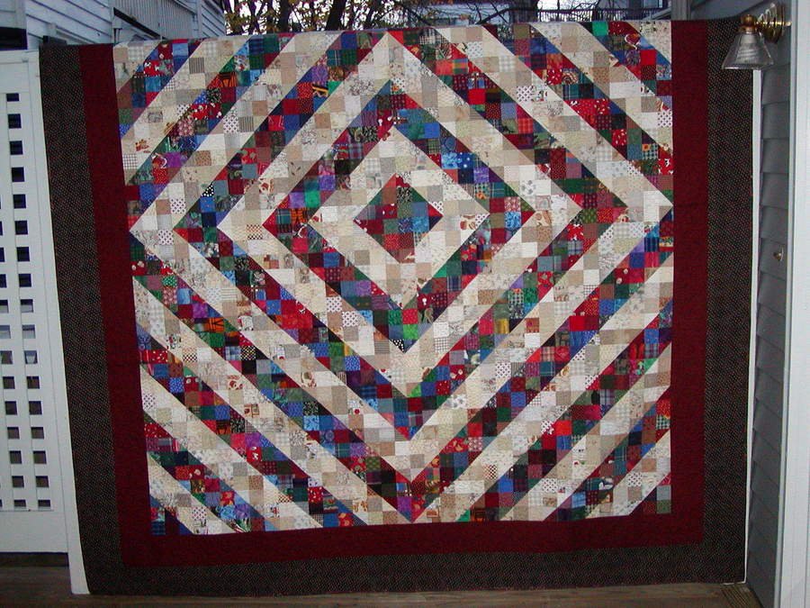 | Design Source - Description | This quilt came about in my effort to use up my scraps. I have made two of this pattern. The block is the traditional split nine patch block from Scrap Quilts by Judy Martin. |