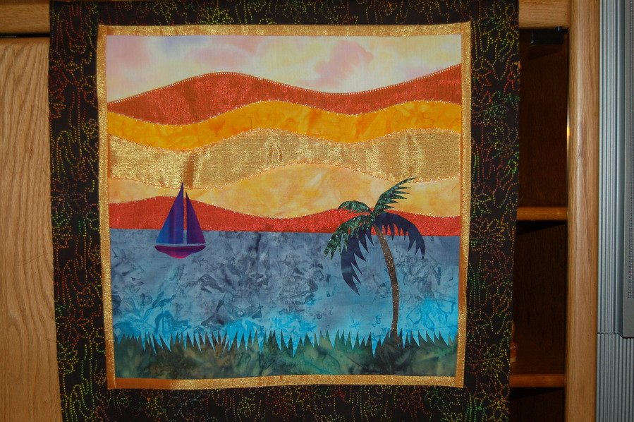 | Design Source - Description | Captured photo at sunset at Kapolei, HI the night we decided to relocate from Hawaii after 17 years in order to move to Colorado to care for both of our mothers. Used photograph to make a pattern for wall quilt. |
