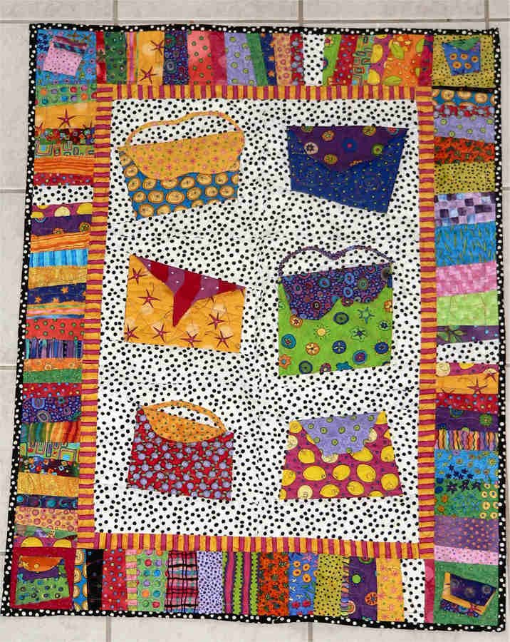 mickiding Handbags - The handbags in this quilt are fun and easy to piece. It's fun to let go and make "wonky" blocks! Some of the bags have hidden pockets.