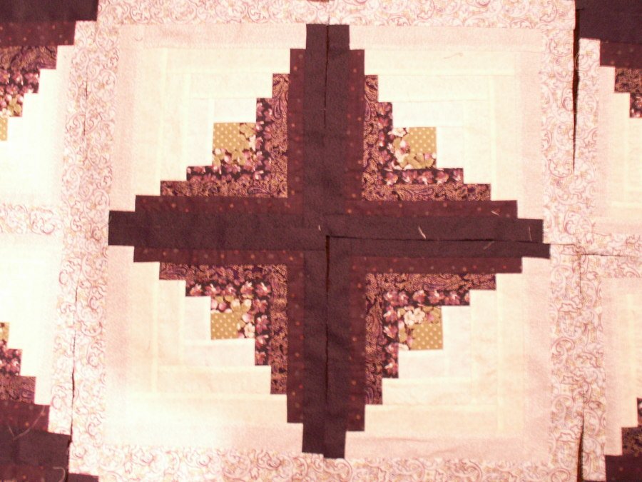 ease2802 Center of Curved Log Cabin - Center of the quilt--don't know how well the embroidery shows