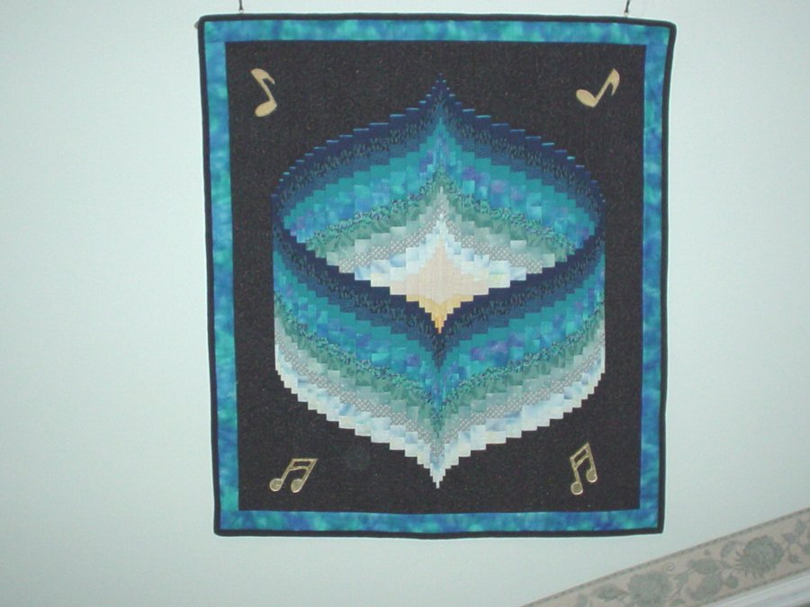 Elmar Rhapsody in Blue - This was a quilt designed for a Challenge which was ------- any piece of music with the word "Blue" in it, each person had a given piece of blue fabric to be used in it. I had always wanted ro tackle a Bargello quilt and I thought this was the perfect opportunity!