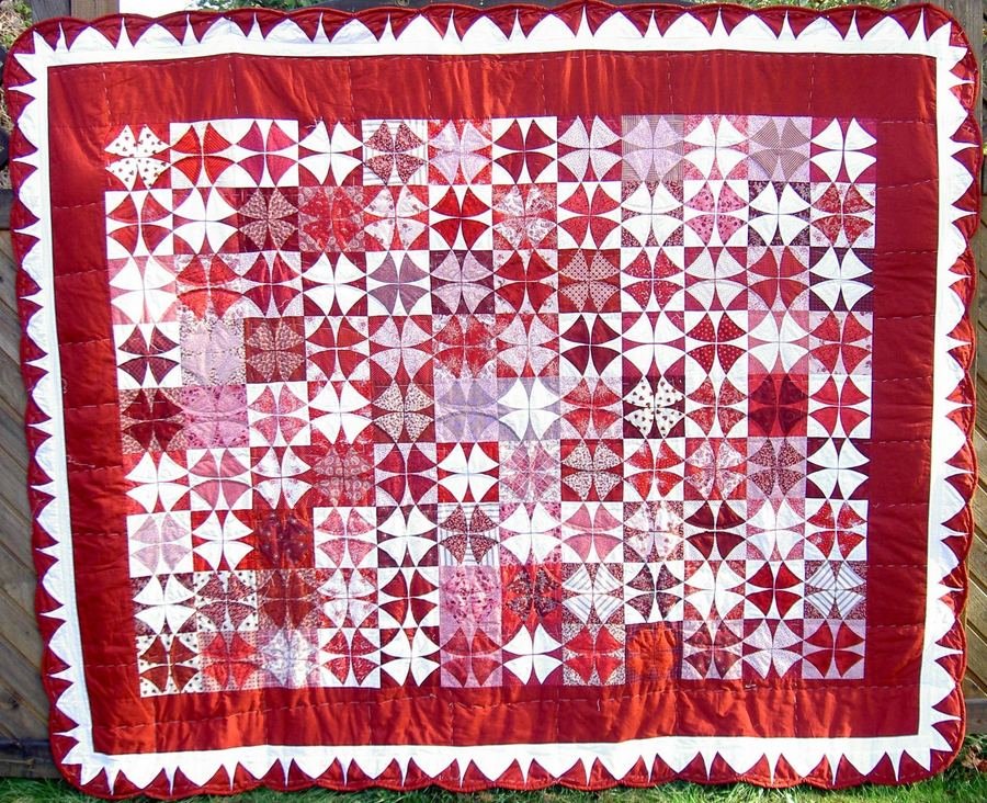 lizhoffmanse Dream values in red - My fourth quilt I made. I have used in wool batting and enjoy hand quilting it. It feels just like butter to hand quilt thru this structure. The original pattern was published in APQmagazine Vol 11 No 11 and it was named BushFire Birthday. Please contact me at lizhoffmanse@yahoo.se with any questions, would love to hear from you!