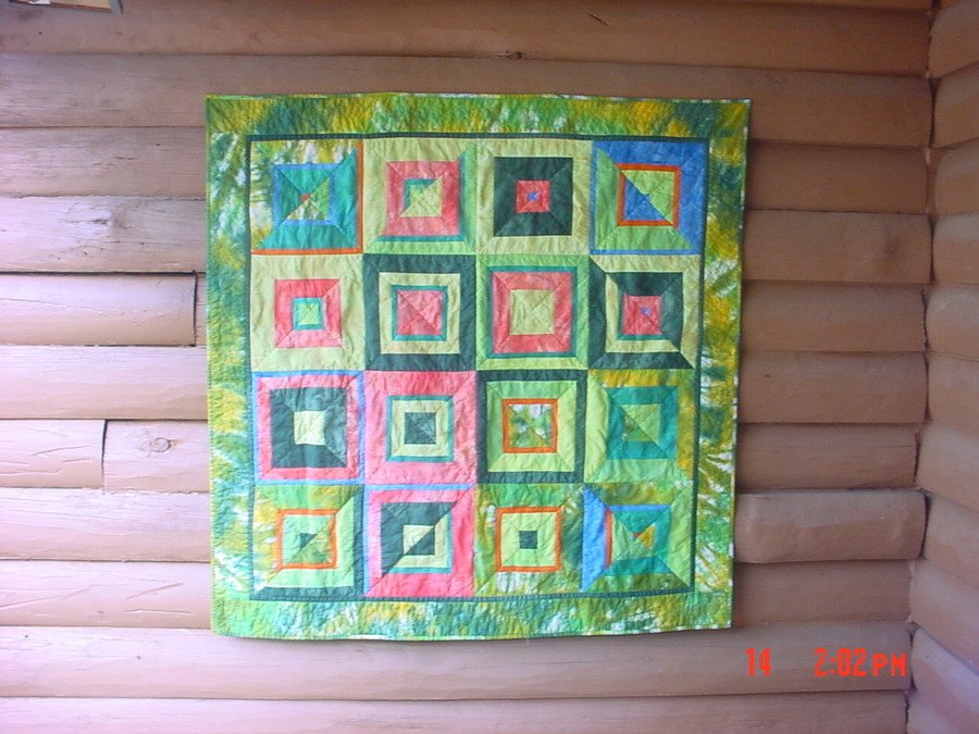 | Design Source - Description | Strip pieced from my hand dyes. Cut into triangles and resewn into blocks. Easy and lots of fun. |