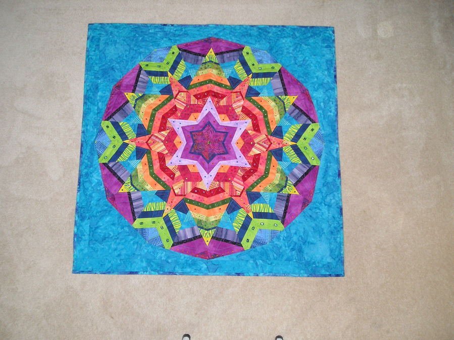 sewcolorful Kaleidoscope with Ricky - I embellished this quilt with hundreds of Swarovski crystals and beads. Great class !!