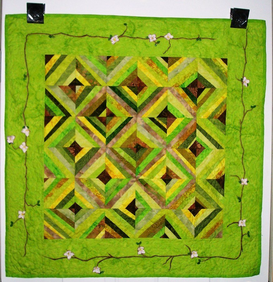 sewcolorful Spring - This quilt was foundation pieced in the center. Threads creating the "branch" in the border and I made small "dogwood" blossoms using a pen to high light the edges. It took honorable mention in a local quilt contest.
