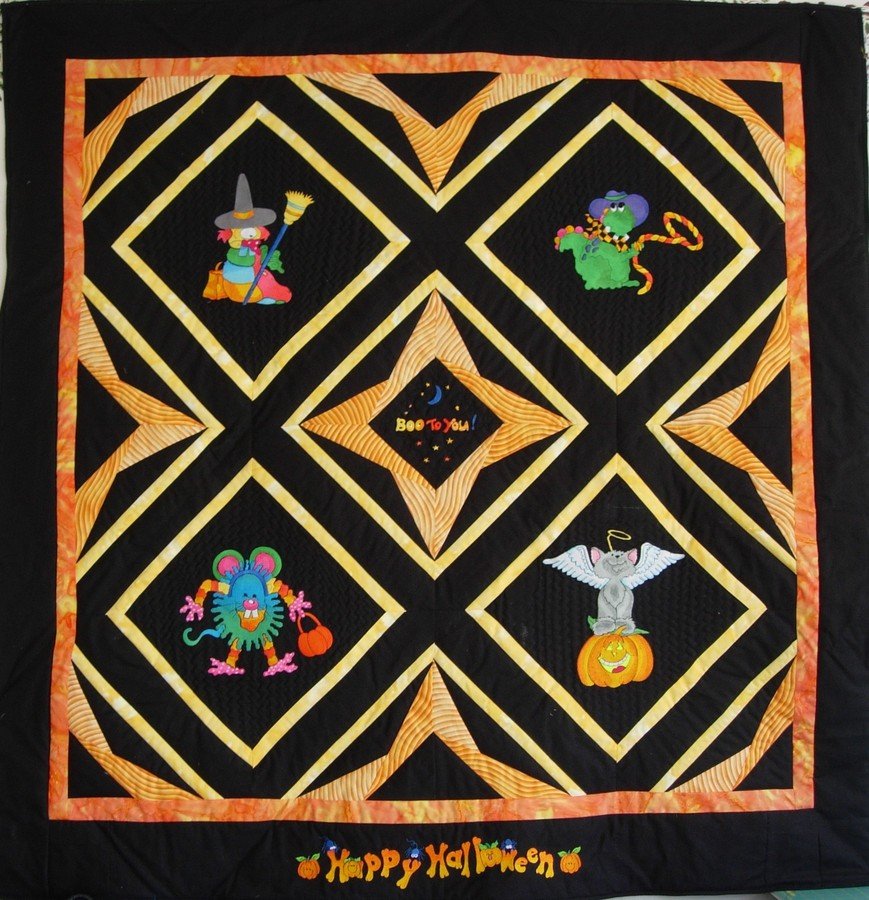 Faith Happy Halloween - My original quilt design, embroidery designs from Boo to You Embroidery Collection. I enlarged the designs too large for the embroidery hoop, split them in the Bernina Embroidery softeware. Some of the blocks were embroidered by re-hooping the fabric and some I embroidered using the Quilter's Double Wide Hoop It All hoop.