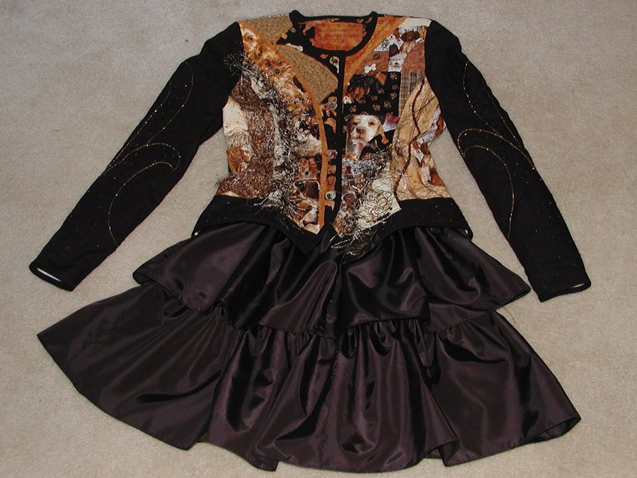 bondgirlquilter What's a Little Dog Hair? - This was a jacket I made for the Pfaff Creative Consultants fashion show when I used to work for Pfaff. It was accepted into the traveling show that year and toured the country. Neat! I am a dog freak and love to make dog themed clothing and quilts. I have a hard time cleaning my projects when they're done because of all the dog hair in my house and studio so I purposely made this one with fabric and yarns and threads that mimiced dog hair. It all just blends in. :)