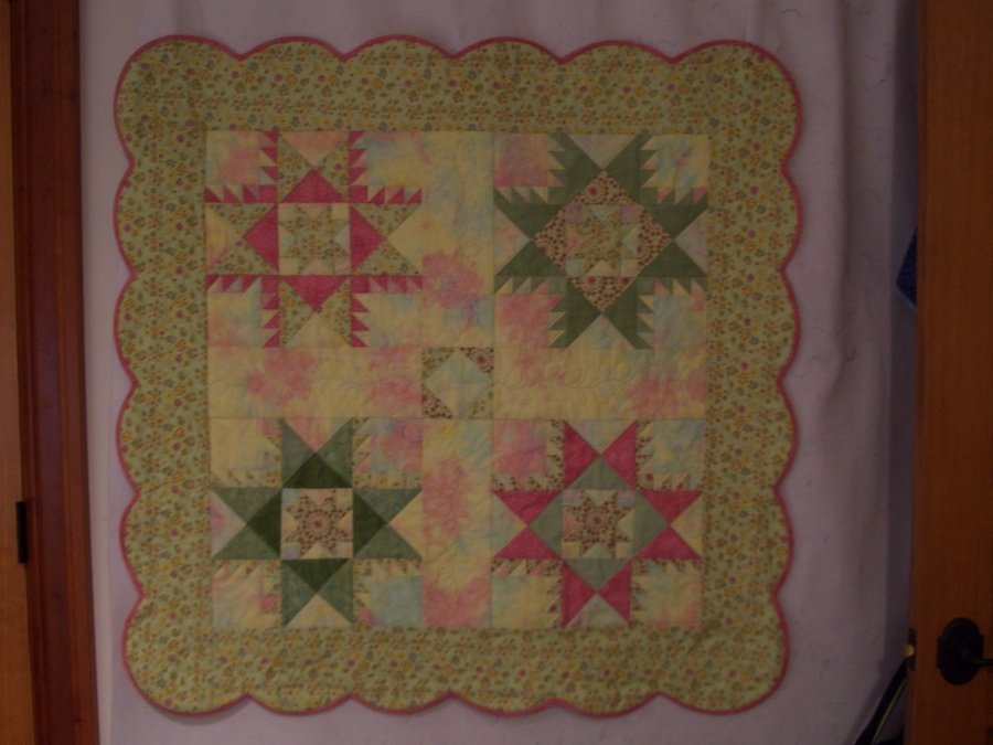 SallyB Feathered Star Baby - I used the published block pattern, but changed the sashing and did my first scalloped edge which was not part of the original pattern. It is for my first grandchild.