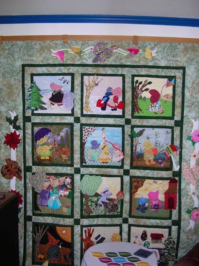 Salty70 Sunbonnet Thru the Year - I loved doing this hand applique and adding the design elements. Some of the blocks have 3D design elements as well. This was so much fun to do, I remember smiling a lot while I was sewing!