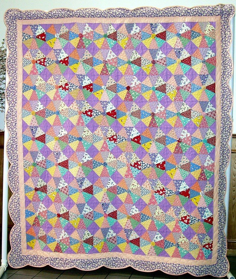 KarenQuiltsNKaboodle Somewhere In Time, Past Meets Present - This quilt has 75 different 1930's reproduction prints collected at the 2003 Houston International Quilt Festival as fat quarters. Each block has a yo-yo made from the fabric. The batting is Hobbs Wool. It hangs in my longarm studio