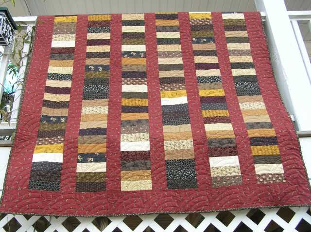| Design Source - Description | Orinally free pattern distributed by local quilt shops. I used 2 1/2" strips (100% cotton, reproduction fabrics) sliced and diced, then reassembled. |