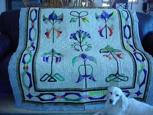 | Design Source - Description | Hand appliqued and machine quilted, crackled cream background. |
