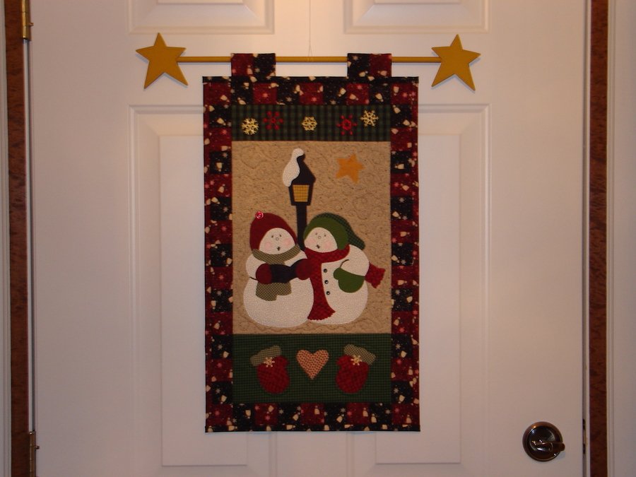 | Design Source - Description | I love snowmen. This pair hang on our front door to welcome everyone in! The snowflakes across the top are machine embroidered. I also made the gold star hanger to hang it on. |