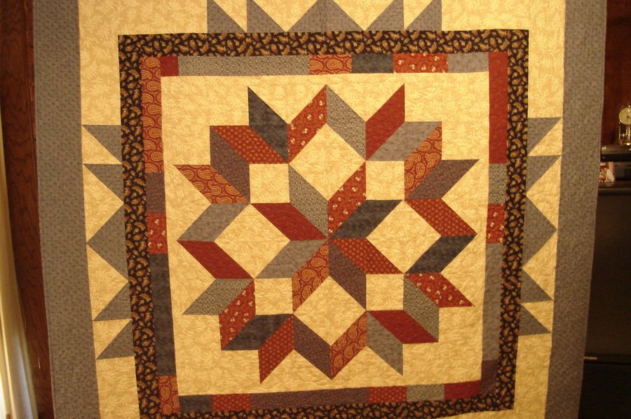 drostep Carpenter Star - I started with eight fat quarters and background fabric to piece the center and scrappy border for this quilt. Then I added two additional borders to make a queen size quilt. You make this quilt without cutting any diamonds or working with bias edges. These quilts are all pieced with half square triangle units. It looks harder than it is.