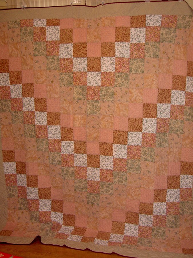 Lisamarie Ambitious Beginnings - This was the first Quilt that I made. This quilt was so big that I had to trim off some and used it to piece the back. Way bigger then our king size bed. It's a big joke now. I had to have it quilted because I just couldn't squeeze it into my machine. I love this quilt and use it and wash it over and over. I can see that some of my seams are pulling apart and my dog chewed a hole thru it but I will just love it more.