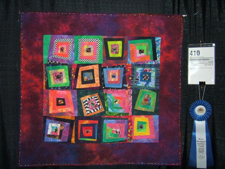 broelfsema Kalidascope Logs - Wendy Butler Burns came and taught a class at our guild, West Michigan Quilters Guild (www.wmqg.org), in 2005. My origianl plan for the blocks was a bust so it turned into this little quilt. I used some of Ricky Tims fabric for the border and used his technique to "set in" the border. Now that was fun:)