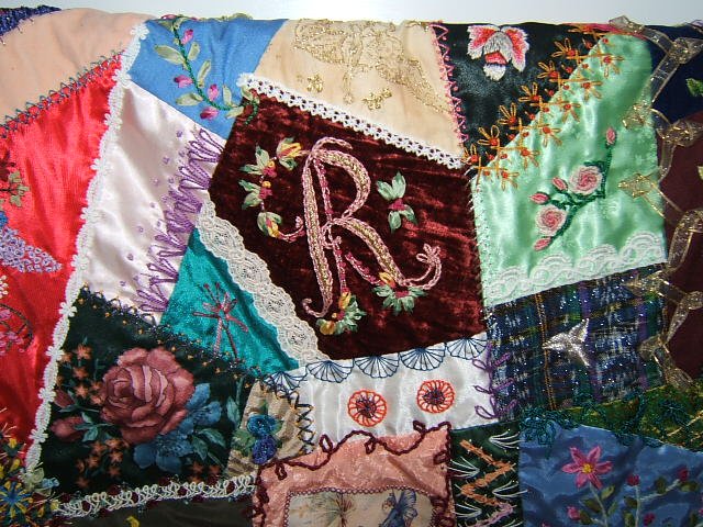 broelfsema Crazy quilt - The design is origianl but the embellishments come from my collection of 25 or more crazy quilt books.