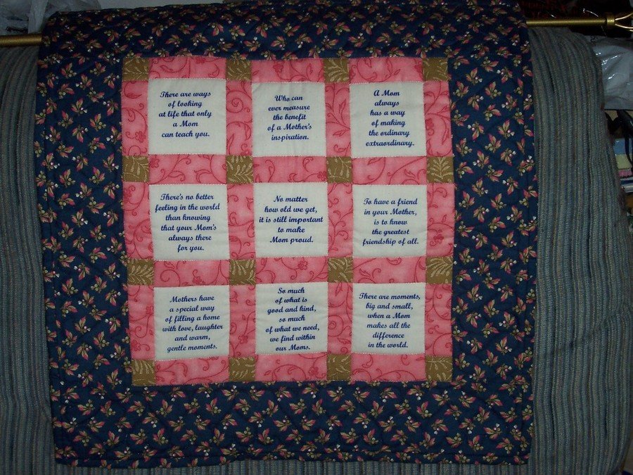Cathysmom Mom's Birthday Surprise - Jom's birthday and Father's were at the same time so since I whipped something up for Dad I had to do something for mom. So using a pre-printed panel we pulled some things from the stash and banged out a little something for Mom. Charlene did the quilting on this one!! One of these days I'm going to figure out how my frame works!!