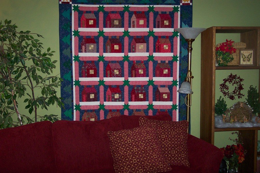 KFox358 Christmas House Quilt - Made in a class where red and green fabric was exchanged for a variety of fabrics