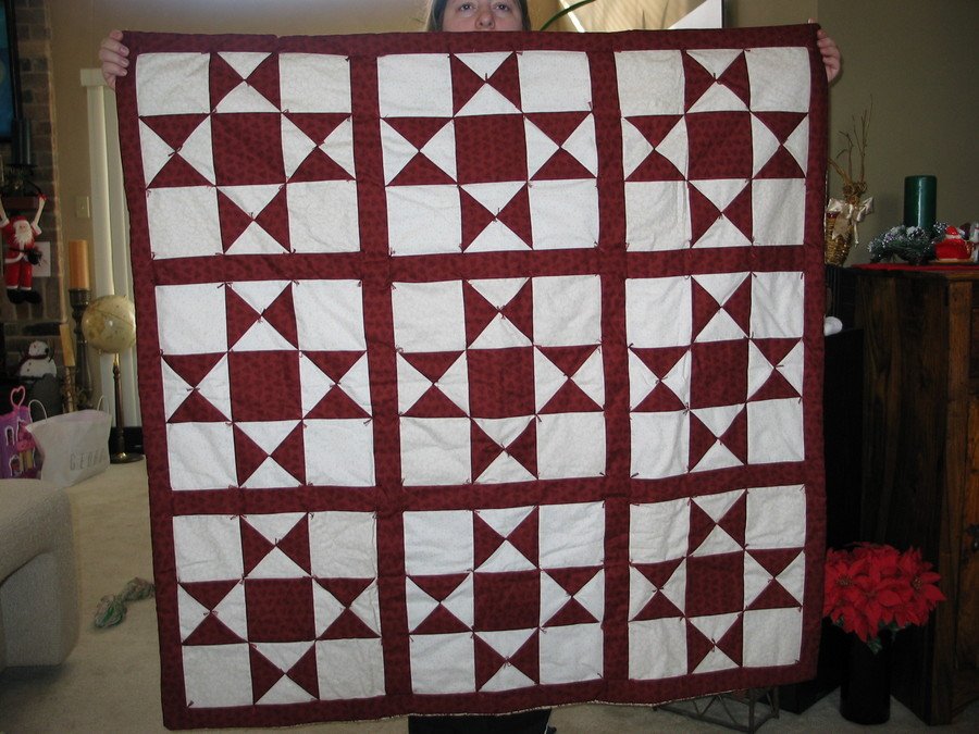 AnneEMZang Red and White in Colorado - This quilt was made as a gift for my mom. I associate certain designs and colors with people, and I always wanted to make my mom a deep red and white quilt when my skills improved....and this is it. She was born in Ohio and now lives in Colorado, hence the Ohio Star block and the name of the quilt.