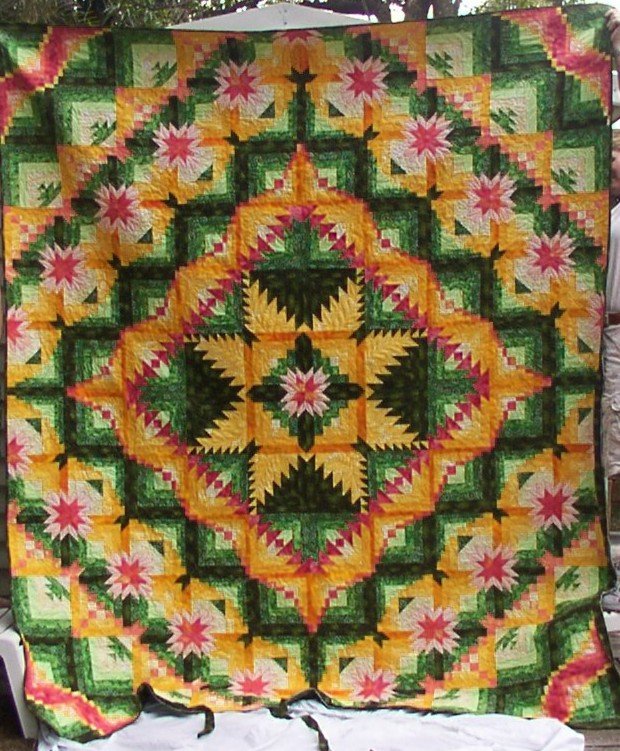 | Design Source - Description | This quilt is a replacement quilt for my bed. The colors are inspired by yellow and red hibiscus flowers and deep green tropical foliage. |