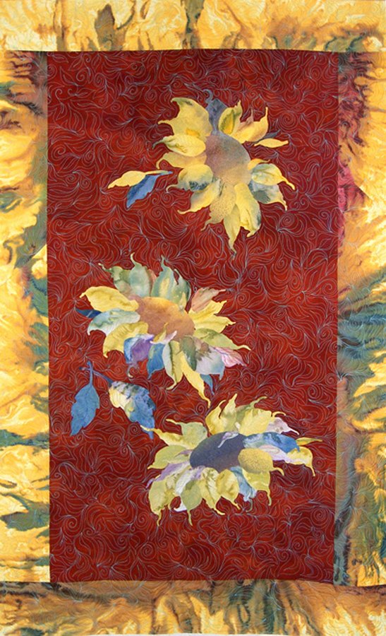 | Design Source - Description | Phil Beaver taught me a method of painting my own fabrics to create the colors, blends, and variations needed for natural settings, using Setacolor paints on cotton. Raw-edge applique is the construction technique. |