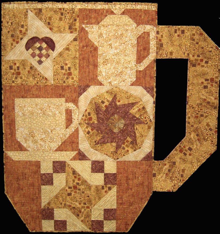 LindaJulia Coffee with Friends - The Halton Hills Quilters' Guild BOM theme was coffee and tea so I used a few of those blocks, added a couple of others adapted from Nancy Johnson-Srebro's Block Magic and Block Magic, too! books and created a large coffee mug wallhanging.