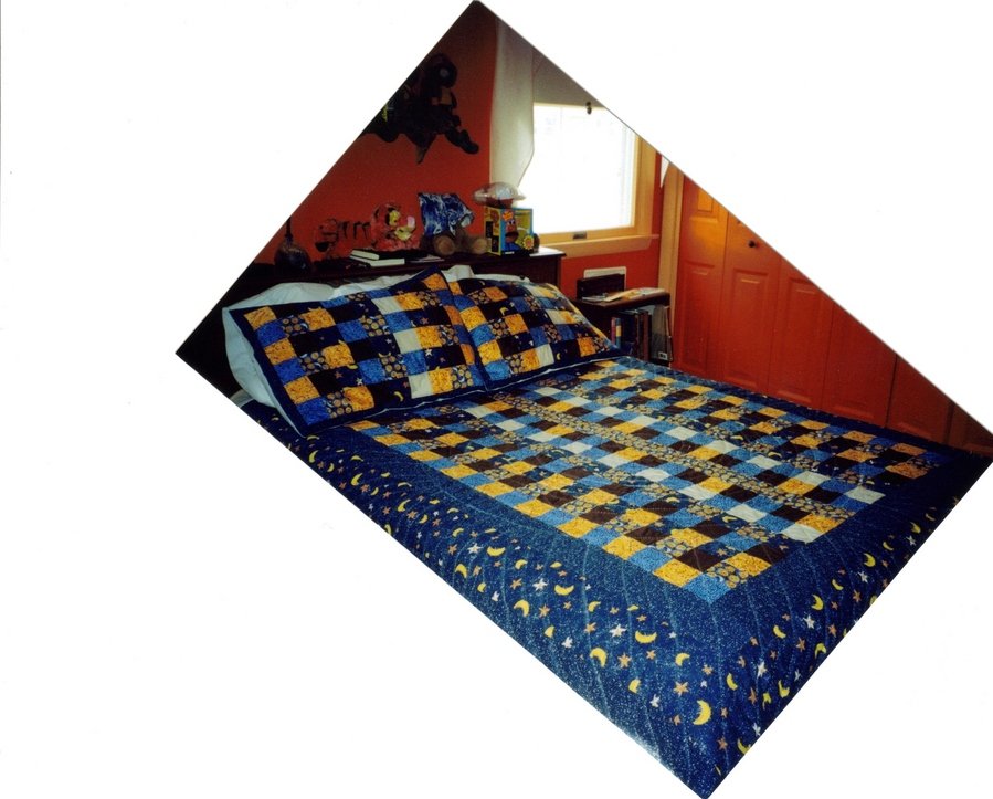 | Design Source - Description | NINE PATCH BLOCK DESIGNED FOR PATRICK AND HIS ORANGE ROOM WITH THE MOON AND STARS |