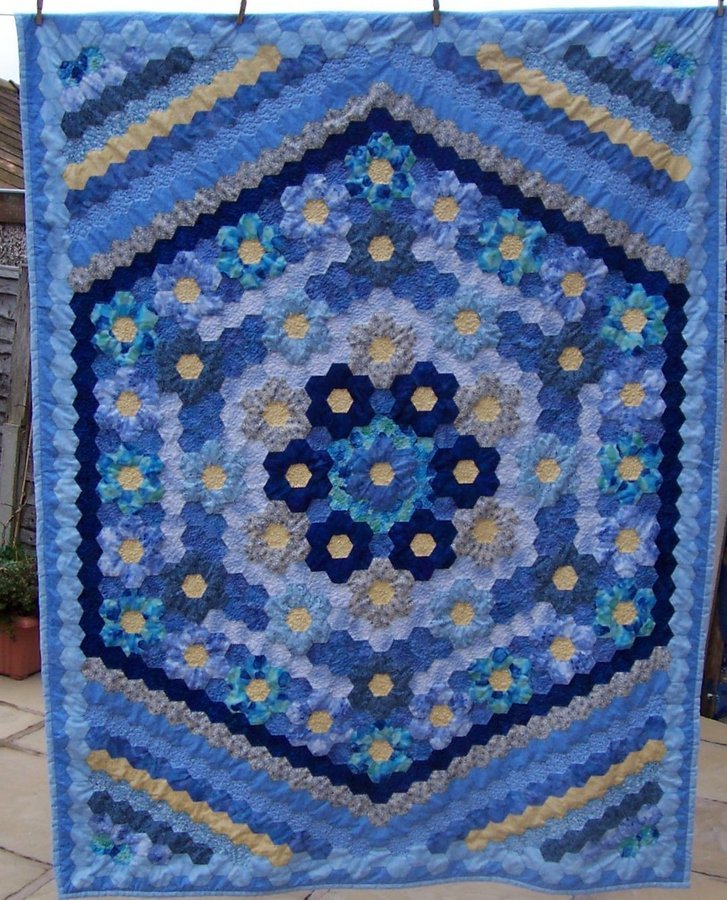 | Design Source - Description | Hexagons sewn together by machine. My own design done on Electric Quilt Program. |