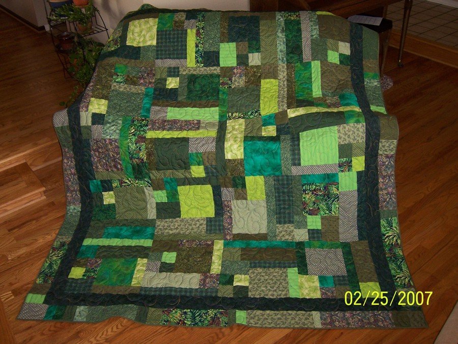 | Design Source - Description | This quilt is made entirely of green scraps and fat quarters. Even the back is green!! My daughter named it, Anna, named it. |