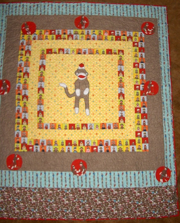 | Design Source - Description | I used the appliqued sock monkey from the pattern, and set it straight instead of on point, then added lots of variety in the borders/piecing. |