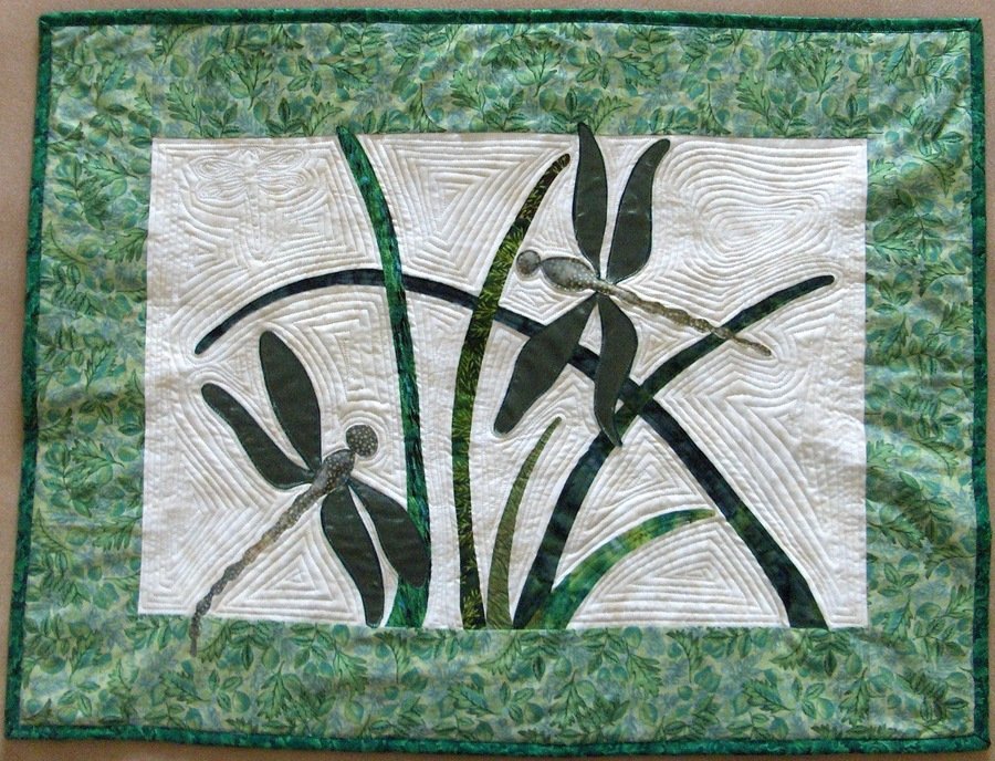 GinnieStitchin Dragonfly - Marjan Kluepfel came to our guild and taught the technique. This was pieced in an afternoon, and finished in a weekend. I echo quilted on my standard machine.