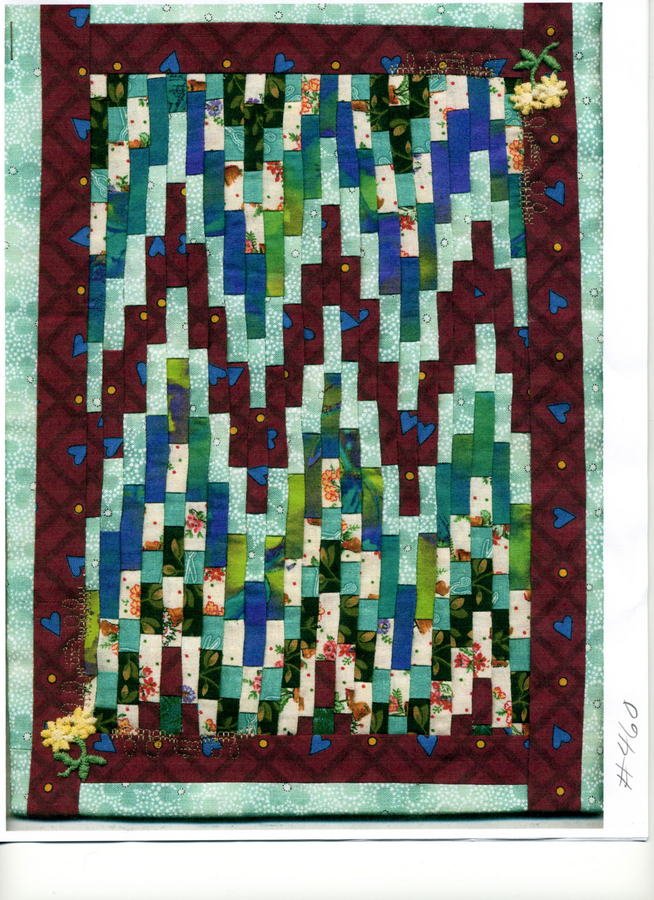 kwiltergirl Lifes Crooked Road - Made for Ami Simms Alzheimers Priority Art Quilt Initiative. Top to Bottom, when we are born our life is a bit "wavey", then we grow and, hopefully, grow straight & true, then if Alzheimers hits us our lives become wavey and crooked, all over again.