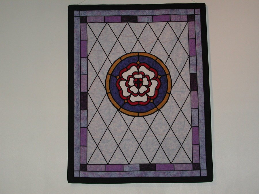 AnnieH A Window on Luther's World - This stained-glass style quilted banner was made to hang on a large wall behind the altar at my church as a general use, all-season banner.