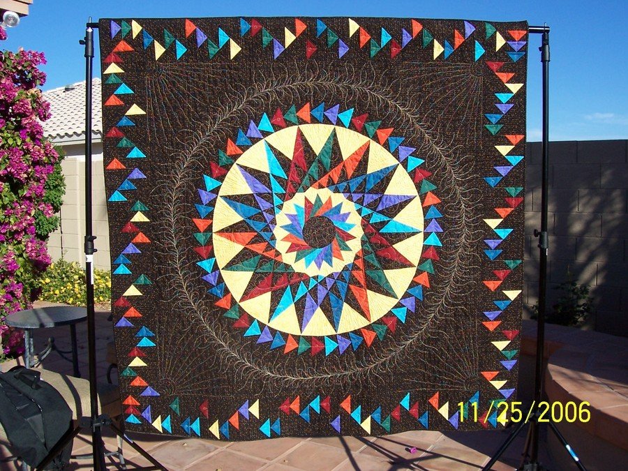 | Design Source - Description | I won a Blue Ribbon in the Arizona Quilters Guild 2007 show in March for large traditional pieced quilt. Professional machine quilted |