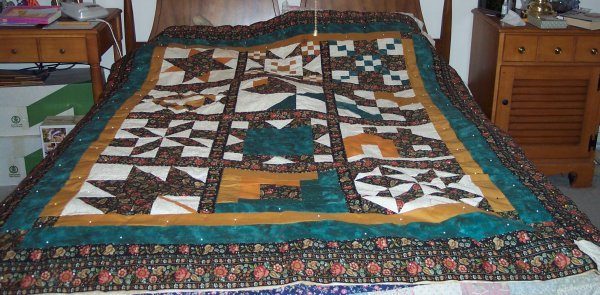 jbarber1943 Road to Recovery - Blocks were chosen to represent each month, colors were based on the focus fabric which was a stripe with a coordinating print. sashing and borders then utillized the stripe. The pieces had been cut and I sewed it together while I was recovering from breast cancer surgery.