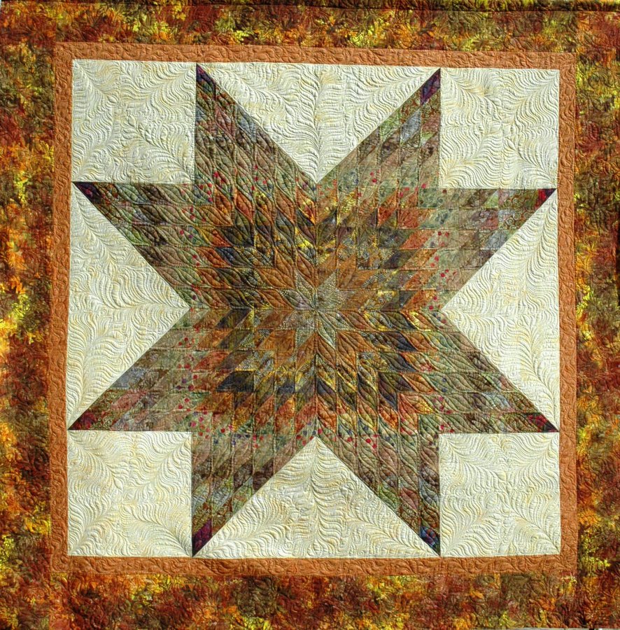 DebbieMaddy Asheville Foliage - This quilt is pieced in sections using only half square triangles, squares and rectangles. It is based on the old Lone Star quilts that were made with 45' diamonds.