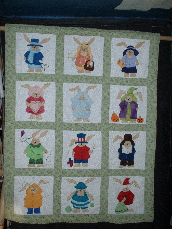 SartorResartus Bunny of the Month - This is a BOM pattern that started me quilting. I made it for DD, but she was too old by the time I finished it. I learned a lot through making this quilt; it followed me on trips to London, USA and Canada.