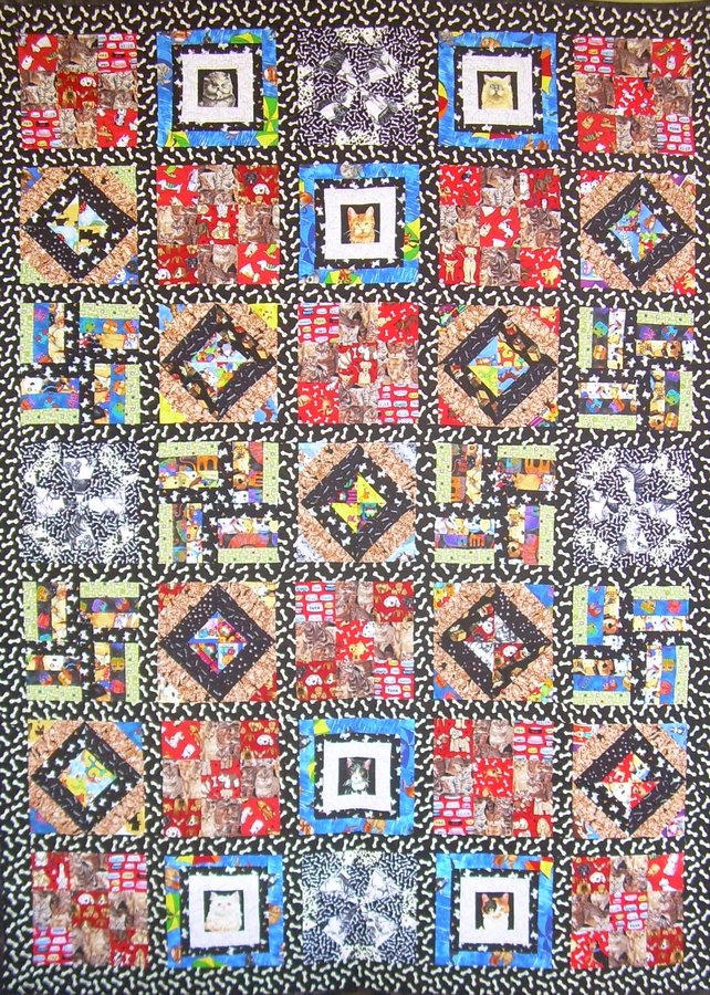 gladquilter Dog and Cat Frenzy - Dog and Cat Frenzy was recently completed and donated to our local animal shelter... to be raffled on May 19, 2007. I created the design with traditional blocks and used over 30 novely animal fabric. Information about the raffle is available at FOHCAS.org (Friends of Habersham County Animal Shelter)