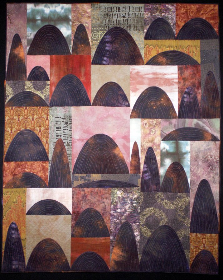 jeriptoo Bridges 4-Simple Arch Distorted - Based on a simple single arch bridge. Here the shape is repeated and distorted. Each element is quilted in a unique style. This quilt has been accepted for the Tactile Architecture 2007 exhibit at the International Quilt Festival and will then travel for a year.