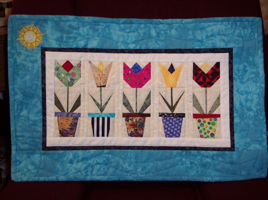 happyquilter55 Flowers - paper piecing, my first. Used my vast suppy of scraps. It looks almost like the image on the cover of the magazine!