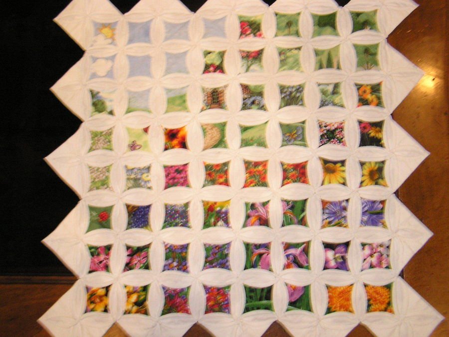 | Design Source - Description | Miniature 17" x 17" cathedral window with sky, trees, grass, and flowers in increasing scale from right to left |